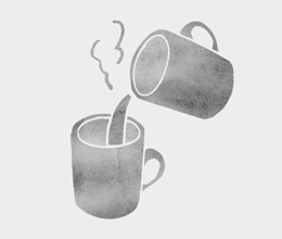 約50℃まで湯冷ましします。湯冷ましするには右のイラストのように2つのマグカップを使ってお湯を入れ変えると簡単に行えます。一回入れ替えを行うと約10℃湯の温度を下げることができます。
