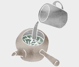 急須にふたをしてから、湯のみに濃さが均一になるように回しつぎしてください。最後の一適まで出しきることがポイントです。※2煎目もおいしくいただけるように注ぎ終わったら急須のふたを開けて置きます。